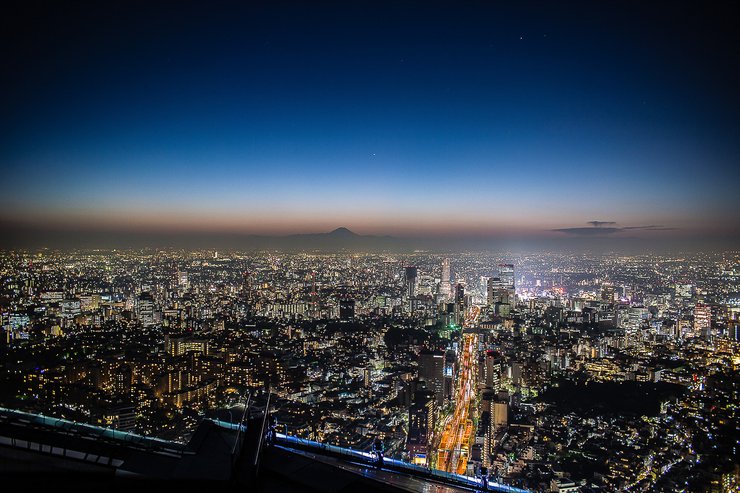 ในบรรดาจุดชมวิวยอดฮิตของโตเกียว โดยเฉพาะช่วงเช้ากับช่วงหัวค่ำ คือ Sky Deck ของอาคารรปปงงิฮิลล์ (Roppongi Hills) ที่ความสูง ๒๗๐ เมตร เหนือน้ำทะเล เป็นอีกอาคารหนึ่งที่นิยมขึ้นกันไปชมมากครับ โดยเฉพาะในวันที่ท้องฟ้าสดใสอย่างวันที่ผมไป เราจะมองเห็นภูเขาฟูจิได้เลยจากยอดตึก รีวิวที่แล้วเราพาไปชมฟูจิกันชัดๆ บนยอดของโตเกียวสกายทรีมาแล้ว แต่ที่รปปงงิงแม้จะสูงไม่เท่าสกายทรี แต่ข้อได้เปรียบคือ หนึ่งอยู่ใกล้กับฟูจิมากกว่า สองหากลมไม่แรง เราสามารถออกไปชมที่ดาดฟ้าได้เห็นวิวกะตา แทนที่จะมองผ่านกระจกแบบสกายทรี และสามเราสามารถถ่ายรูปหอคอยโตเกียวได้ชัดที่สุด และยังถ่ายติดสกายทรีอีกด้วย รีวิวนี้ ข้อมูลไม่เยอะมากนะครับ เรามาเน้นดูวิวดีกว่า เพื่อประกอบการตัดสินใจสำหรับใครจะขึ้นไปถ่ายภาพข้างบนยอดตึกครับ ฟูจิจะอยู่ทางทิศตะวันตกอย่างที่เห็นในรูปด้านล้างครับ