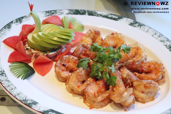 กุ้งสดๆเป็นๆตัวใหญ่ขนาด 2 คำนำมาปรุงจนสุกกำลังดีผิวกรอบทานได้เลยเนื้อในหวานนุ่มตามธรรมชาติ ปรุงรสหอมเข้มข้นเคลือบตัวกุ้งจนทั่วถึงอร่อย แนะนำ