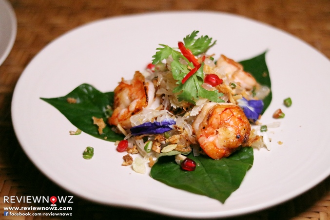 ทานส้มโอและเครื่องต่างๆพร้อมกันรสจะออกนัวๆไม่มีรสโดด เสริมกลิ่นรสและเนื้อสัมผัสด้วยกุ้งเนื้อแน่นเด้งหอมเด่นมากๆ