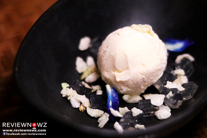 ไอศกรีมเนื้อเนียนแน่นนุ่มโดดเด่นด้วยความหอมละมุนของดอกมะลิและมีความหวานกำลังดีปิดมื้อด้วยความเป็นไทยที่มีสีสัน