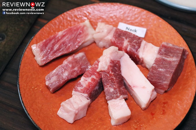 เนื้อที่ใช้ในโปรโมชั่นนี้ก็คือเนื้อญี่ปุ่นจาก Hokkaido และ Kampo ซึ่งมั่นใจได้ว่าทางร้านใช้เนื้อญี่ปุ่นของแท้เพราะมีใบ Certificate แต่ที่สำคัญกว่าใบรับรองคือความตั้งใจของพี่ญัฐที่อยากให้ทุกๆคนได้มีโอกาสชิมเนื้อญี่ปุ่นในส่วนต่างๆนอกเหนือจากความอร่อยแล้วก็ยังได้ประสบการณ์ความรู้จากการได้ชิมของจริง และพี่ญัฐก็ชัดเจนจริงใจพอที่จะบอกว่าเนื้อญี่ปุ่นที่ใช้ในโปรโมชั่นนี้จะเป็นส่วน Secondary cut ซึ่งอาจจะไม่นุ่มละลายในปากเท่า Prime cut แต่กับราคาแค่นี้โด้ให้ Third cut ยังได้เลย (ฮ่าๆ)