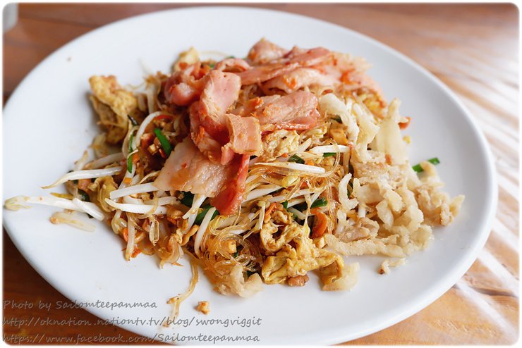 จานที่สองก็ยังเป็นเบค่อน แต่เป็นผัดไทยเส้นแก้วเบคอน ต้องบอกก่อนว่าเส้นแก้วนี้มันมีความหนึบอยู่แล้ว ยิ่งมาได้ซอสผัดไทยยิ่งดูดซับน้ำซอสเข้ามาในเส้นได้เป็นอย่างดี กินเคี้้ยวหนึบหนับ ได้รสชาติทีเดียว
