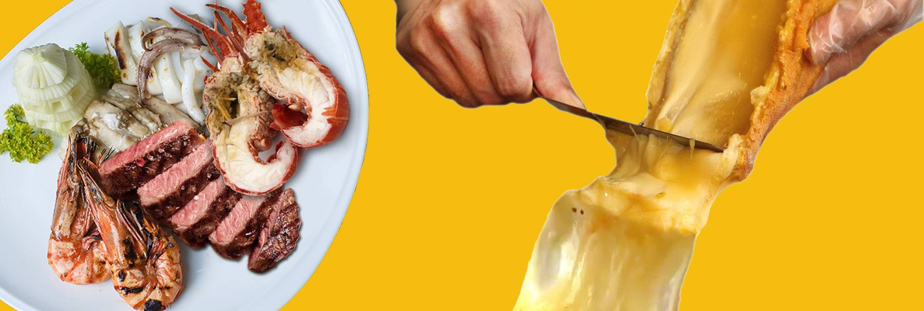 สามารถนำของย่างมาราดด้วยชีสราเคล็ตต์ (Raclette) เป็นชีสย่างและขูดอาหารขึ้นชื่อของสวิตเซอร์แลนด์ ตัวชีสเป็นนมวัวเลยม่ีความหอมของชีสอ่อนๆไม่แรงตัวเนื้อหนึบหนับรสชาติมันๆนัวๆทานง่าย เลือกได้เลยว่าจะราดกับอะไร แต่ต้องขอย้ำว่าเมื่อราดแล้วให้รีบทานให้เร็วที่สุดจะอร่อยที่สุด แนะนำ