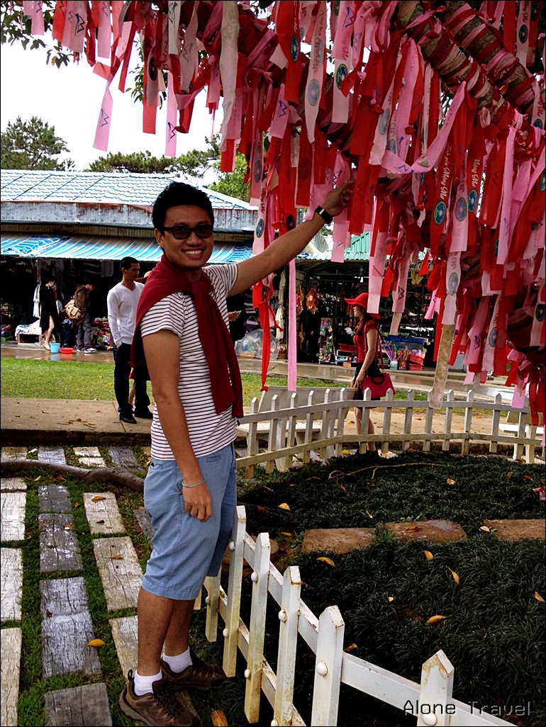 ระหว่างยืนหลบฝน เจอต้นไม้ศักดิ์สิทธิ์ เขาบอกว่าถ้าพาคู่รักมาผูกริบบิ้นแดงที่เขียนชื่อด้วยกัน จะรักกันมั่นคงยาวนาน แล้วถ้ามาไม่มีคู่อย่างพวกเราหล่ะ ทำเป็นถ่ายรูปไว้ละกันโน๊ะ 555+
