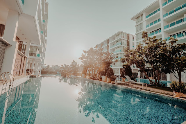 🌴บรรยากาศรอบๆเงียบสงบ เป็นส่วนตัว จะมองไปทางไหนก็ดูสวย โล่ง ใสๆ ถึงแม้ไม่ติดทะเล แต่ก็ให้อารมณ์เหมือนอยู่ติดทะเลเลยล่ะ เพราะ มีสระว่ายน้ำที่ใหญ่มากก และมีหลายสระมากก แถมมีสวนน้ำสำหรับเด็กๆด้วย 🏊