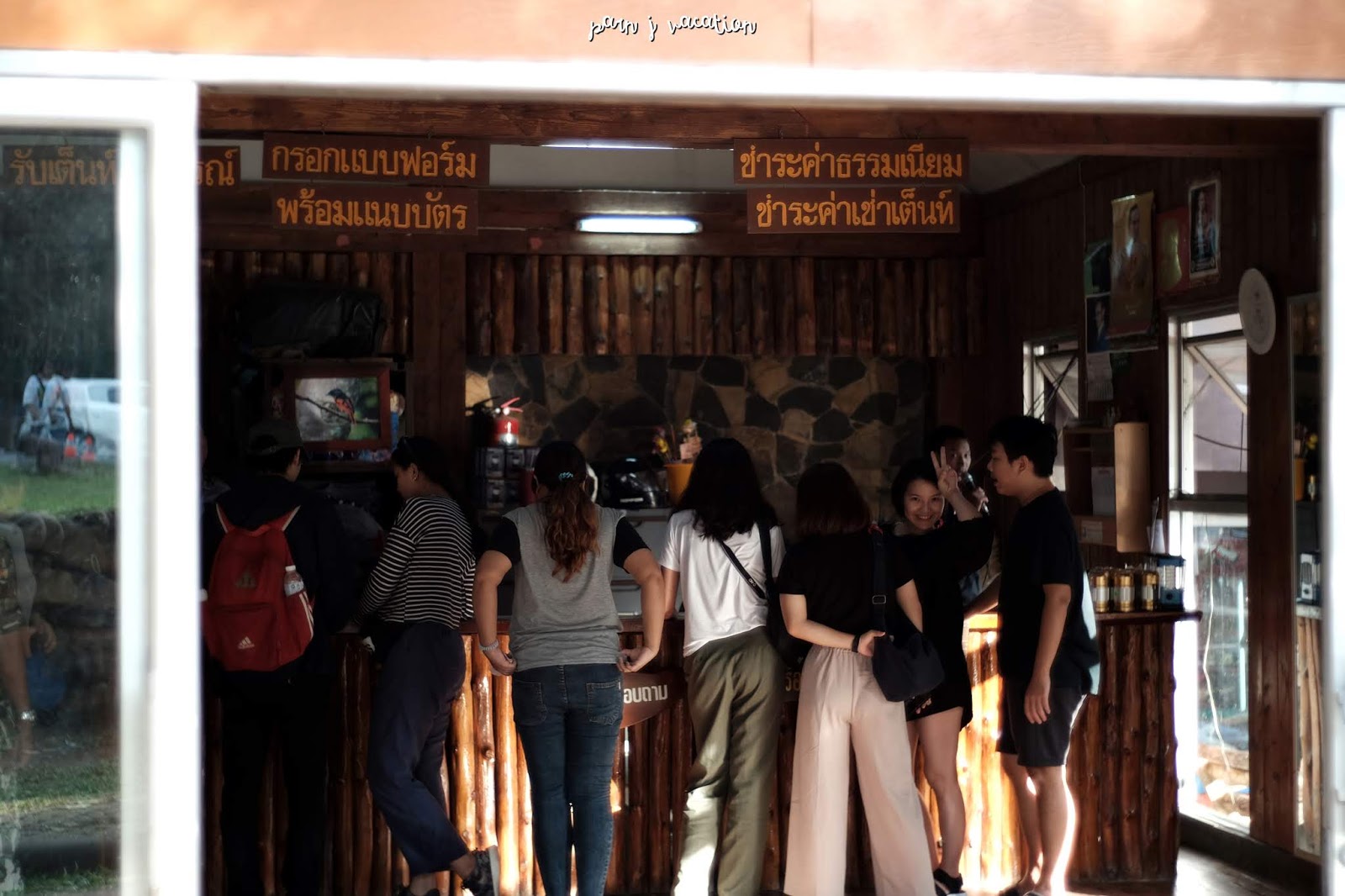 หลังจากจอดรถ เราก็มาต่อแถวเพื่อเช่าเต้นท์ และเครื่องนอน