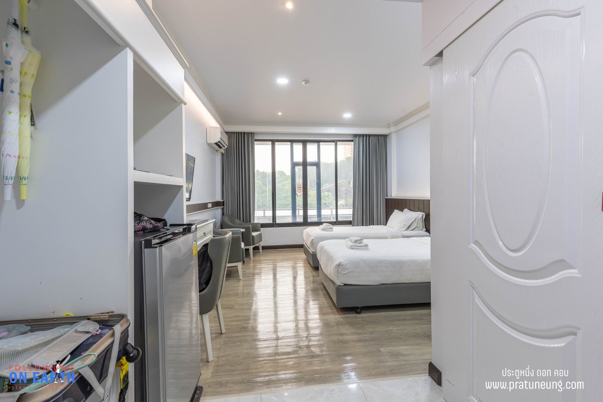 ห้องพักที่เราพักแบบเตียงคู่ ห้องพักใหญ่ กว้างขวาง นอนสบาย แอร์เย็นฉ่ำ เครื่องอำนวยความสะดวกครบครัน และ ที่โรงแรมไม่มีบริการอาหารเช้านะ