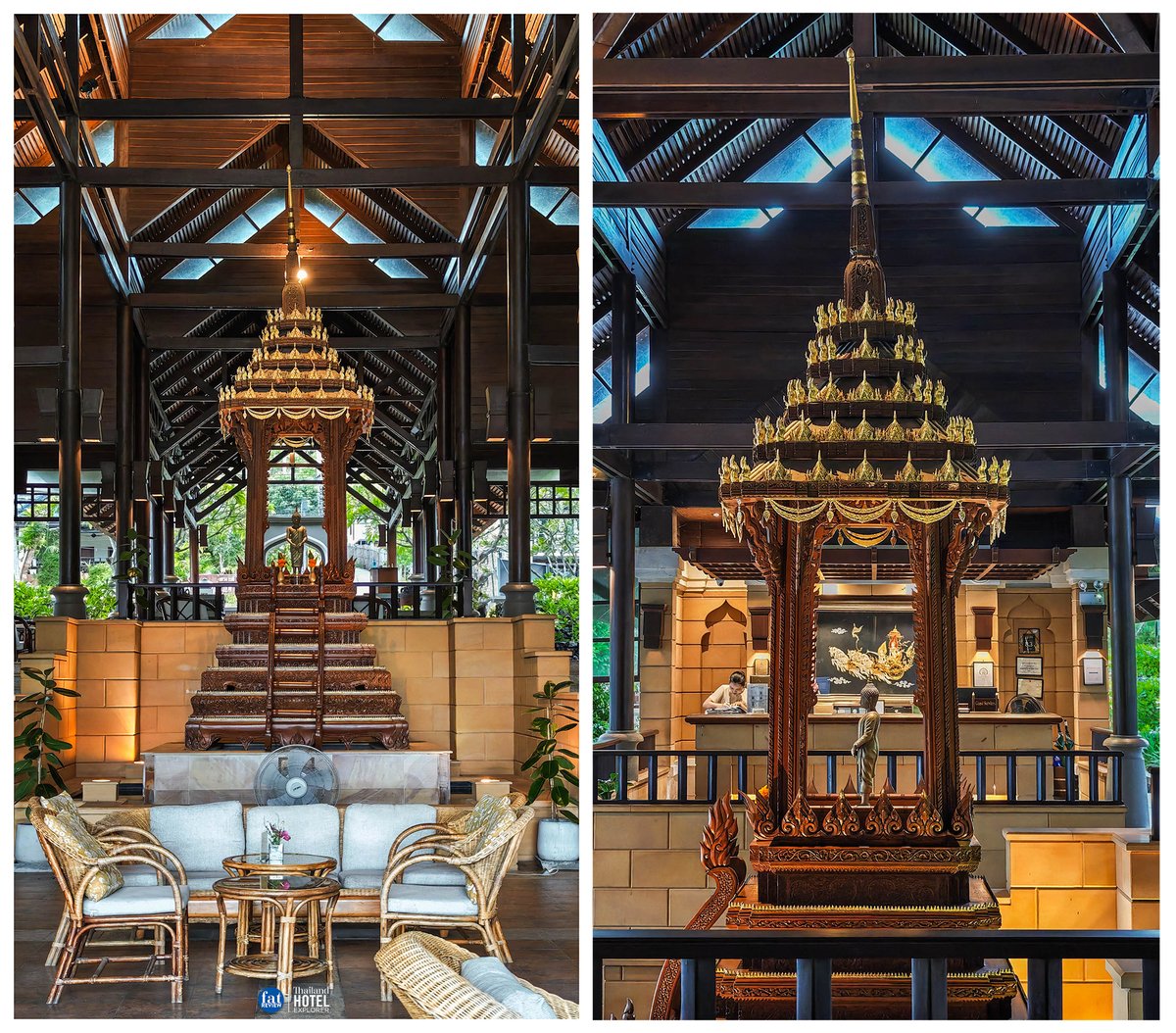 โครงสร้างหลักเป็นไม้จริง ตรงใจกลาง Lobby ประดิษฐานพระพุทธรูปในบุษบก เพื่อตั้งใจโชว์ความเป็นไทย และ ความเป็นเมืองพุทธ ได้อย่างงดงาม